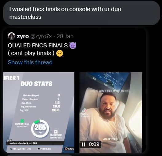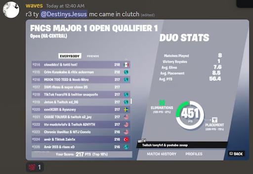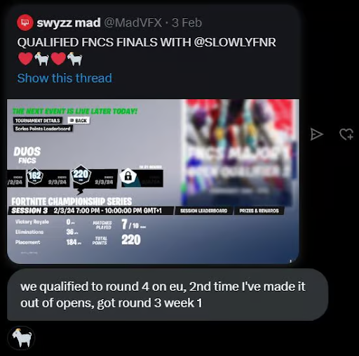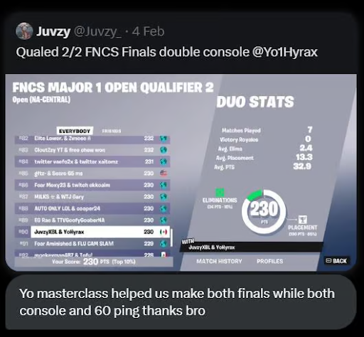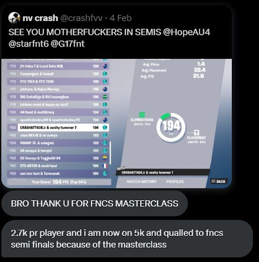 the FNCS Masterclass and qualed to FNCS Finals""