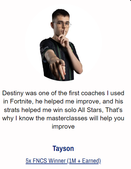 When you get access to Top-tier meta tactics… Fighting techniques… And endgame strategies inside the FNCS masterclass…